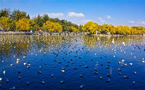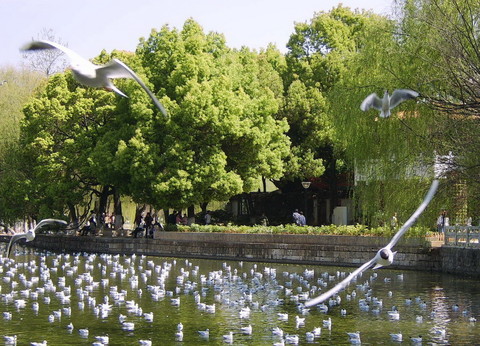 湖心亭西侧有建于嘉庆年间的莲华禅院和放生池,是有名的“濠上观鱼”处,如今禅院变为游艺宫,“放生池”成了一座水上园林;西北角有“来爽楼”,设有流冰场;西南角是“葫芦岛”;棕榈挺拔,东南角有一个由三个半岛连成的大花园为“水月轩”花木繁盛;东北角有“知春亭”,逢节便有人聚此对唱山歌,别有一番情趣。如今的翠湖之美,又增添了雪白的红嘴鸥,从头年11月到次年3月,成群地从遥远的北方飞到这儿过冬,一年一度,从不间断。“翠湖观鸥”已成为昆明最热门的景观之一。