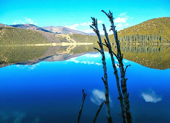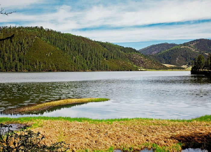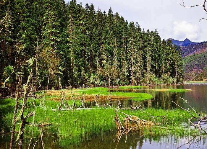 属都湖隶属于普达措国家公园,位于香格里拉东北部35公里处,距碧塔海十多公里。湖水清澈,水底小鱼悠游。最独特的是一种名为“裂腹鱼”的珍稀鱼类,这种鱼腹部有一条细细的裂纹,鱼肉细腻鲜美。湖四周是遮天蔽日的林木,湖畔还有个牛羊成群的牧场,充满藏区的生活情趣。