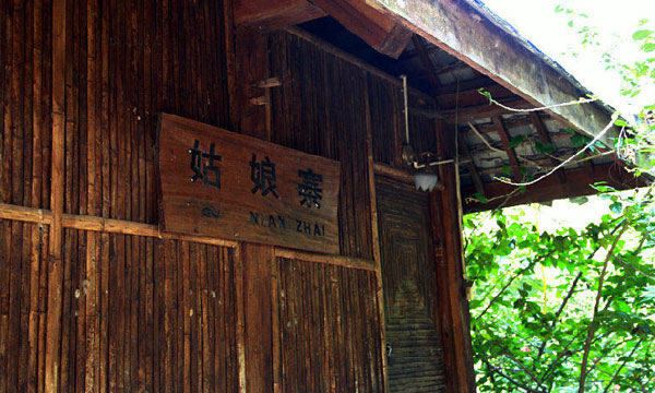 山寨与外面,有一座铁桥连接,让人感到现代文明与古典结合的有点生硬。铁桥的尽头,是山寨的门口,拾阶而上,就进了寨子