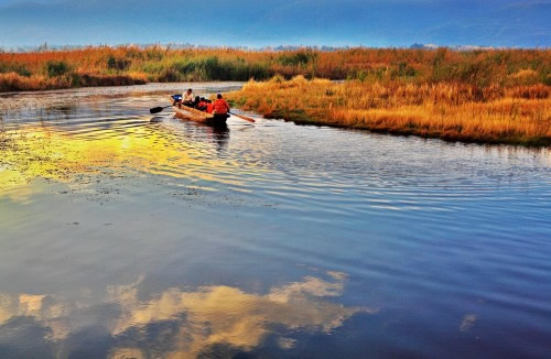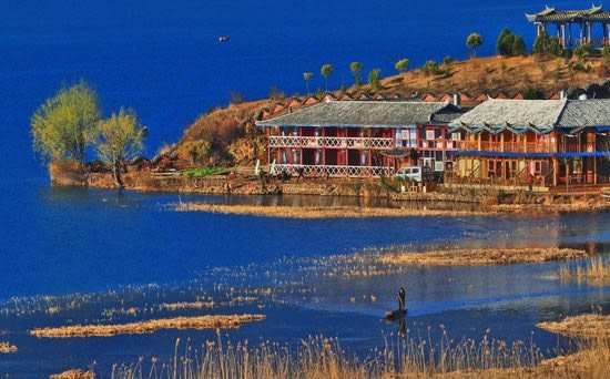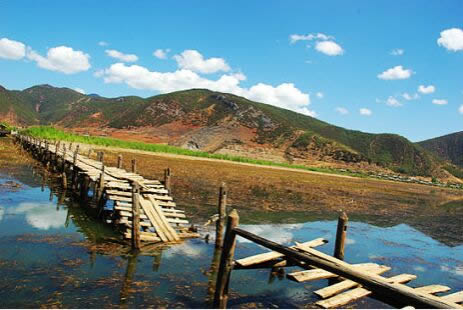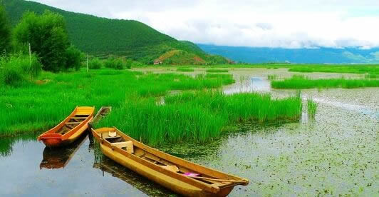 “草海”就是指长满草的高原湖泊,在这海拔2000多米的高原上很有特色。它是泸沽湖的子湖泊,泸沽湖的水与它相连。泸沽湖的水非常的蓝,非常的清。