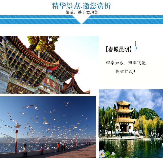 ☆精选的景区  精挑细选云南省著名旅游景区,让你玩的开心,玩的舒心。