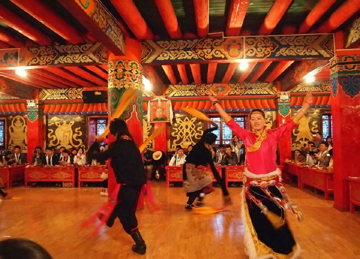 早餐7:00后(以导游通知为准),乘车前往显示的地平线相关里拉(香格里拉表达的意思是接近天堂的地方)圣地,途经【长江第一湾】停车拍照,之后前往中国大陆第一个国家公园,国家5A级旅游景区【普达措国家公园】(游览 3-5个小时,它由牧场而得名的一个高原构造湖,风景秀丽。雪山、湿地、森林、湖泊构成一幅天然的画卷,成为央视外景最佳拍摄地——属都湖;藏语称为“尼仁塘”,由于外形像人类的眼睛,而被藏传佛教高僧们称为佛祖释迦牟尼“世间眼”,也是摄影家的天堂——弥里塘亚高山牧场;素称为高原明珠,普达措的汉译,它是藏民族崇拜的“八瑞象”自然显现地——碧塔海)。之后观看藏族最有特色的歌舞表演【藏民家访】。享受藏族最高标准贵宾接待——土司宴(温馨提示:游览时间约90分钟,含烤鸡,马奶酒,酥油茶,青稞,歌舞表演,牦牛肉火锅含10荤10素让您享尽旅程欢乐)。结束后入酒店休息。